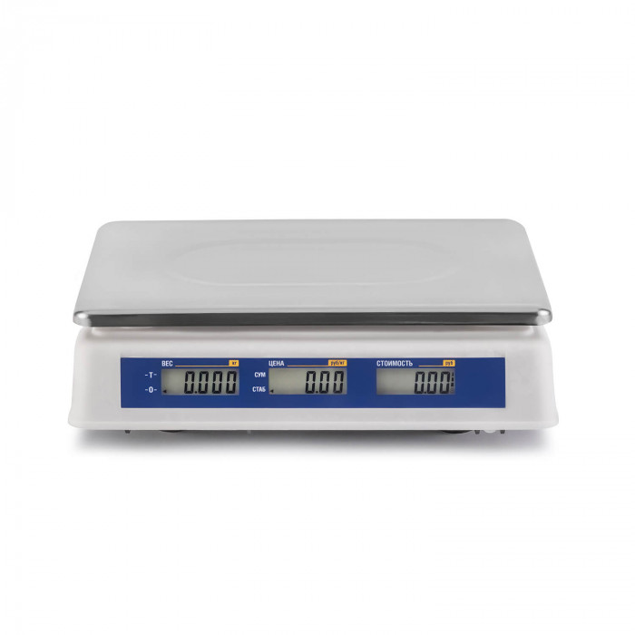 Со стороны покупателя и со стороны продавца установлены 2 LCD-дисплея на 16 разрядов. Они показывают массу груза, цену за килограмм, итоговую стоимость покупки. Работа сопровождается визуальной и звуковой индикацией.
